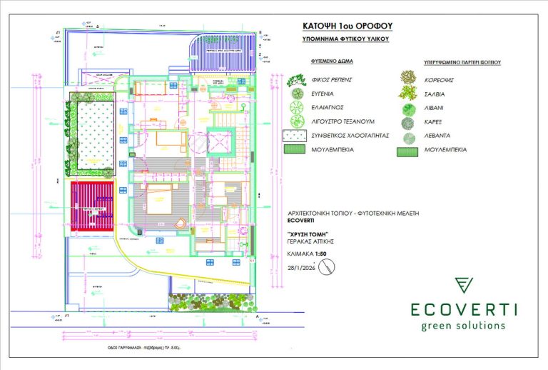 On the 1st floor of the building, having a small planted terrace, we covered the planting around the perimeter, with plants of dense and beautiful foliage, of medium size.