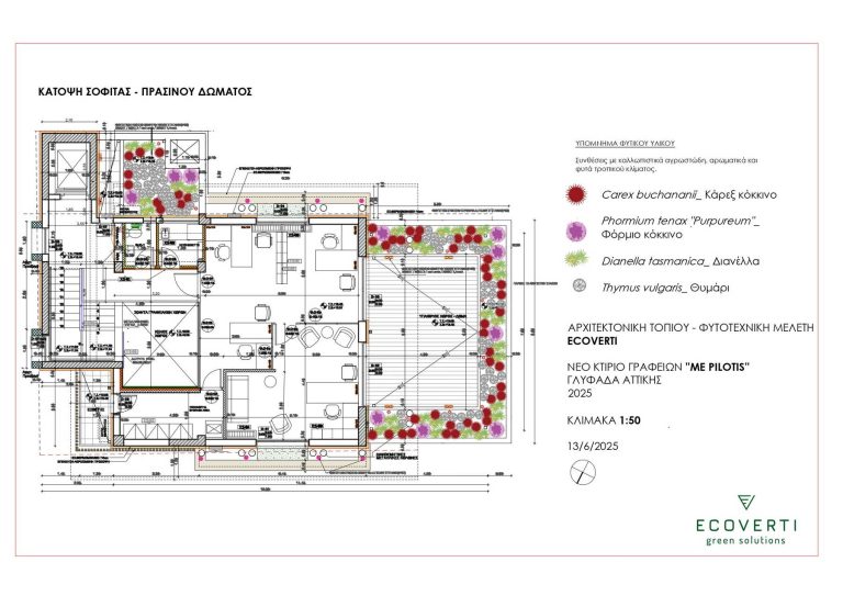 In the attic of the building, we proposed compositions with ornamental grasses, aromatic and tropical plants.